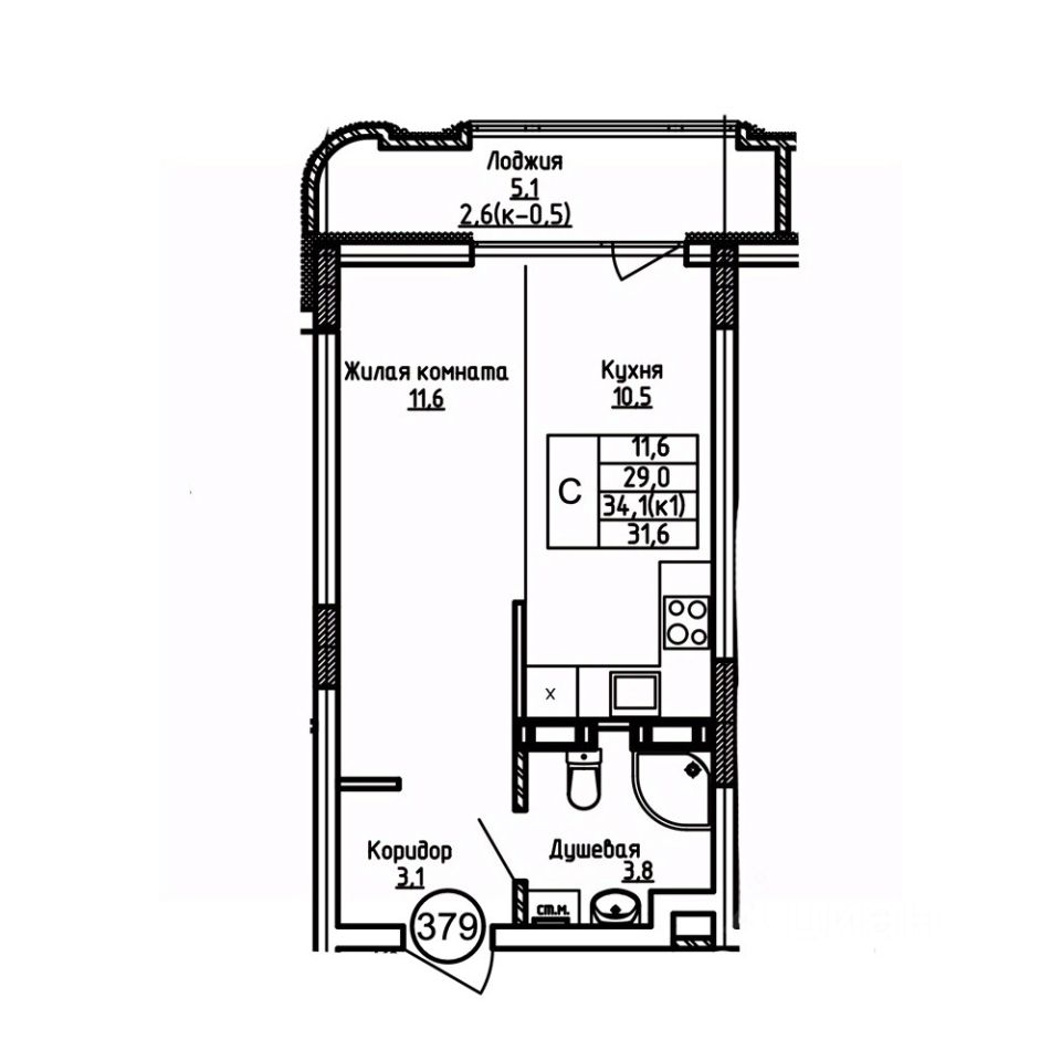 Жилая площадь11,6 м²