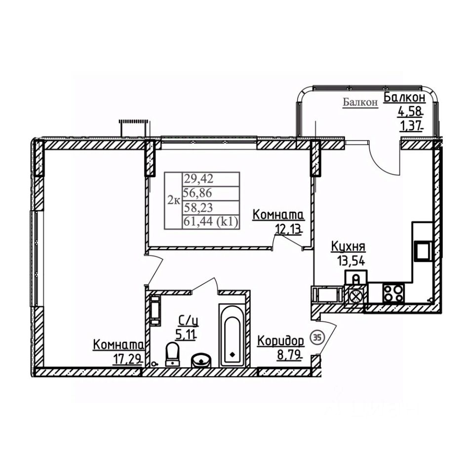 Продаётся 2-комнатная квартира в строящемся доме (ГП 6), срок сдачи: I-кв. 2030, общей площадью 58.23 кв.м., на 9 этаже. Жилой комплекс "Теодор Кроне" - квартал класса комфорт в зеленом районе Калининграда. Проект состоит из четырех очередей и 12 домов. В процессе строительства первая очередь из двух домов переменной этажности от 5 до 9 этажей.