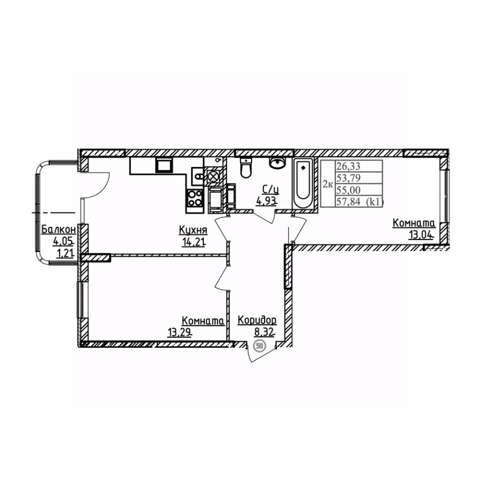 Общая площадь55 м²