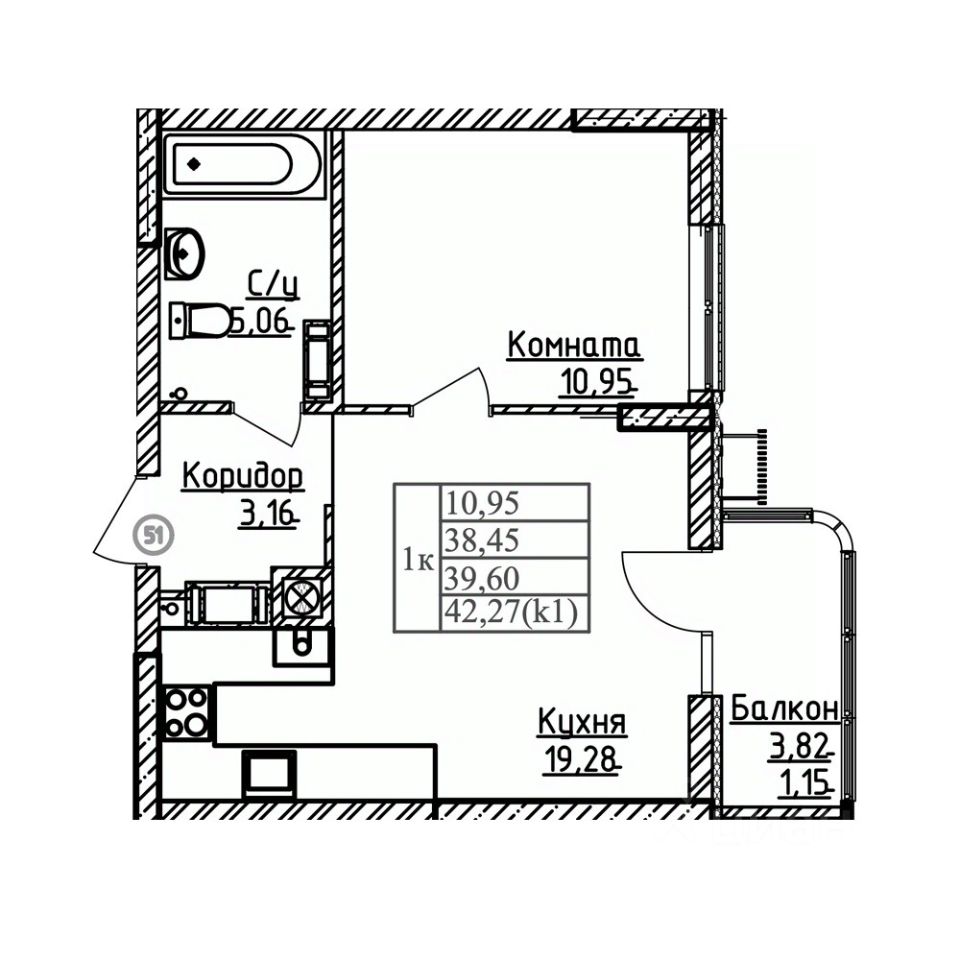 Общая площадь39,6 м²