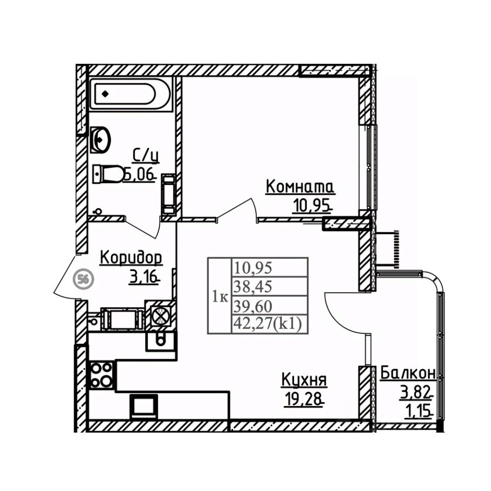 Общая площадь39,6 м²