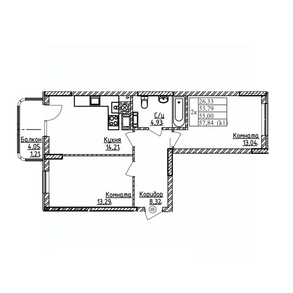 Общая площадь55 м²
