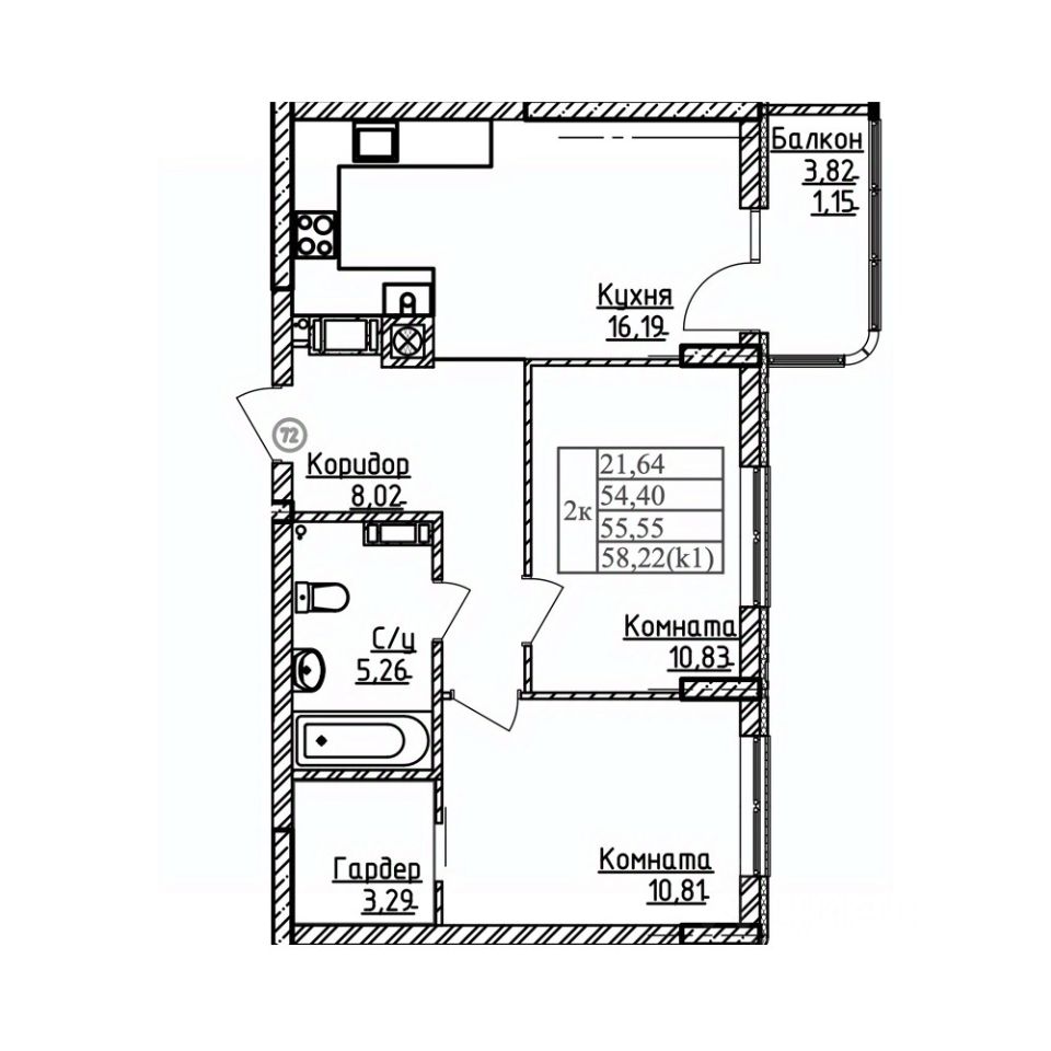 Общая площадь55,55 м²