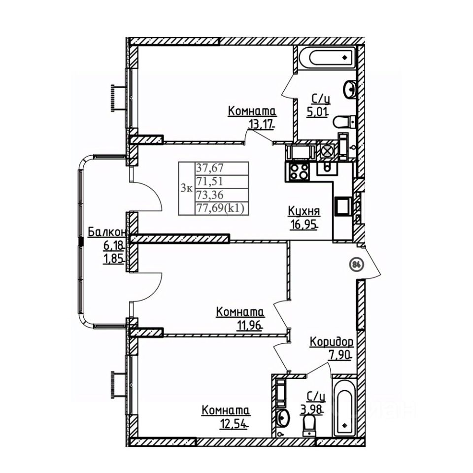 Продаётся 3-комнатная квартира в строящемся доме (ГП 6), срок сдачи: I-кв. 2030, общей площадью 73.36 кв.м., на 2 этаже. Жилой комплекс "Теодор Кроне" - квартал класса комфорт в зеленом районе Калининграда. Проект состоит из четырех очередей и 12 домов. В процессе строительства первая очередь из двух домов переменной этажности от 5 до 9 этажей.