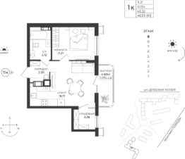Общая площадь43,32 м²
