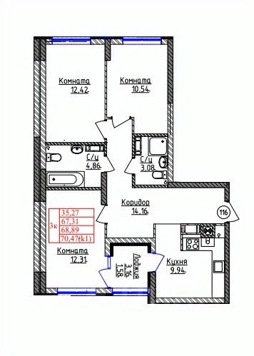 Продаётся 3-комнатная квартира в строящемся доме (ГП 6), срок сдачи: I-кв. 2030, общей площадью 68.89 кв.м., на 1 этаже. Жилой комплекс "Теодор Кроне" - квартал класса комфорт в зеленом районе Калининграда. Проект состоит из четырех очередей и 12 домов. В процессе строительства первая очередь из двух домов переменной этажности от 5 до 9 этажей.