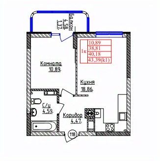 Общая площадь40,18 м²