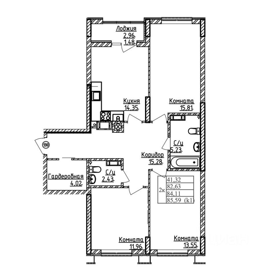 Общая площадь84,11 м²