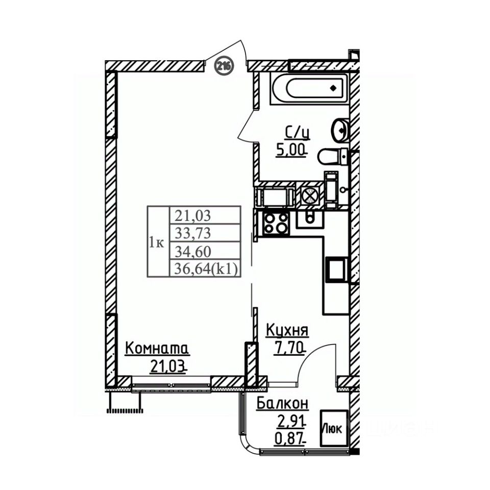 Общая площадь34,6 м²