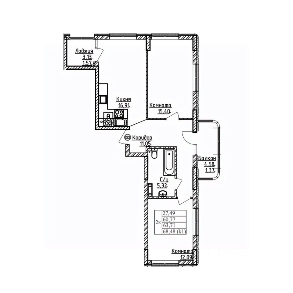 Общая площадь63,71 м²