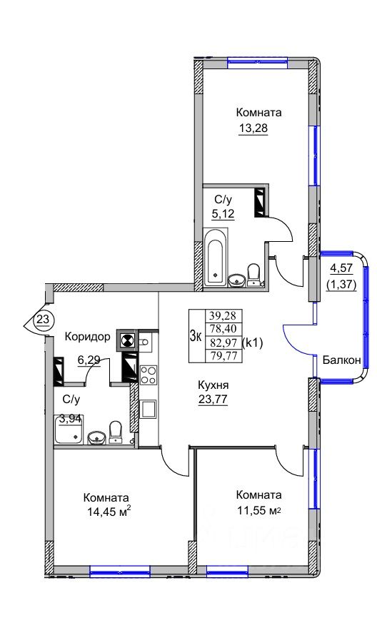 Продаётся 3-комнатная квартира в строящемся доме (Дом 8), срок сдачи: I-кв. 2030, общей площадью 79.77 кв.м., на 3 этаже. Жилой комплекс "Теодор Кроне" - квартал класса комфорт в зеленом районе Калининграда. Проект состоит из четырех очередей и 12 домов. В процессе строительства первая очередь из двух домов переменной этажности от 5 до 9 этажей.