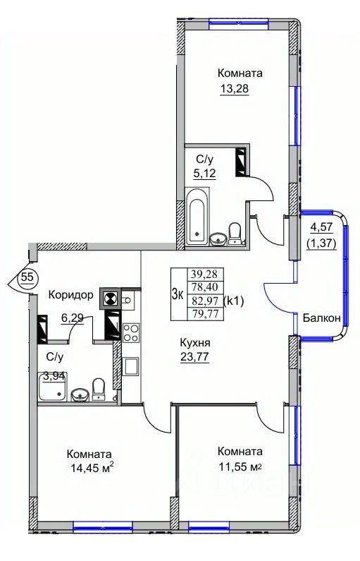 Продаётся 3-комнатная квартира в строящемся доме (Дом 8), срок сдачи: I-кв. 2030, общей площадью 79.77 кв.м., на 7 этаже. Жилой комплекс "Теодор Кроне" - квартал класса комфорт в зеленом районе Калининграда. Проект состоит из четырех очередей и 12 домов. В процессе строительства первая очередь из двух домов переменной этажности от 5 до 9 этажей.