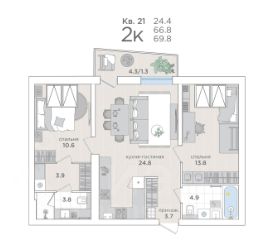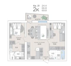 Продаётся 2-комнатная квартира в строящемся доме (Дом 15), срок сдачи: I-кв. 2027, общей площадью 66.8 кв.м., на 4 этаже. "О2" - малоэтажный жилой комплекс европейского комфорт-класса от застройщика "Дом Инвест".