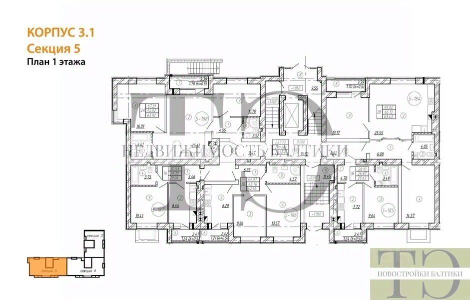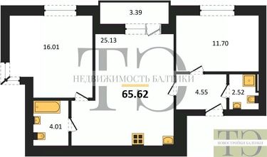 Квартира: 2 к 65,62 кв.м., 1 этаж в комплексе Суздальский 3, 3 очередь, корп.3.1, сдача: 4кв. , этажей: 9, адрес Калининград г., Суздальская ул., , Застройщик: Модуль-Стройград.