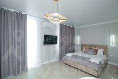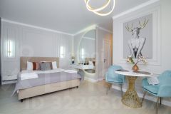 - Просторная двуспальная кровать и огромное парящее зеркало добавляют стиля и комфорта.