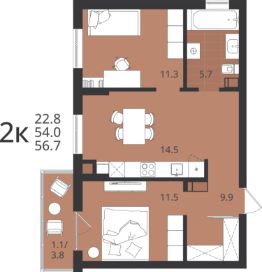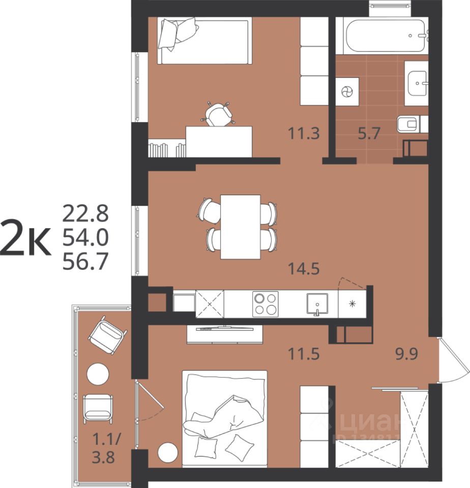 Большой выбор квартир: от студий до 3-комнатных, с разными вариантами планировок и балконов