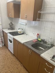 Общая площадь квартиры составляет 41 кв. м, жилая — 23 кв. м, площадь кухни — 7 кв. м. Комнаты изолированы, их площадь — 10 и 13 кв. м. Окна выходят на улицу и во двор. Квартира угловая, с косметическим ремонтом, с/к пакеты, ламинат, линолеум, с мебелью, частично техника. Совмещённый санузел в кафель. Готова к проживанию.