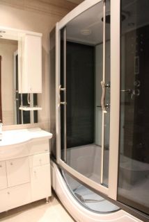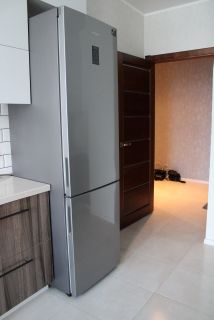 Вся мебель и бытовая техника новая, остается в квартире. На кухне мебель установлена по обе стороны, столешница литая вместе с мойкой, искусственный камень. Бытовая техника: газовая варочная панель Еlесtrоluх, электрический духовой шкаф Еlесtrоluх, посудомоечная машина Еlесtrоluх, холодильник Sаmsung. Установлен проточный фильтр для питьевой воды Аквафор Фаворит Эко. Из кухни на балкон установлено панорамное остекление с системой полного отката двери и открывания на вентиляцию, производство Германия. Потолки натяжные во всей квартире, белые, матовые. Отопление автономное, 2-х контурный котёл Веrеttа, производство Италия. Система теплых полов (водяные) в кухне, в прихожей, ванной. В комнате на солнечной стороне (солнце после 16:00) установлен кондиционер. В ванной установлена большая душевая кабина. Установлена новая входная дверь.