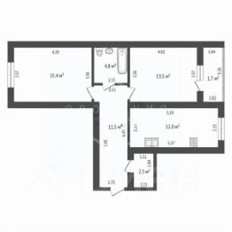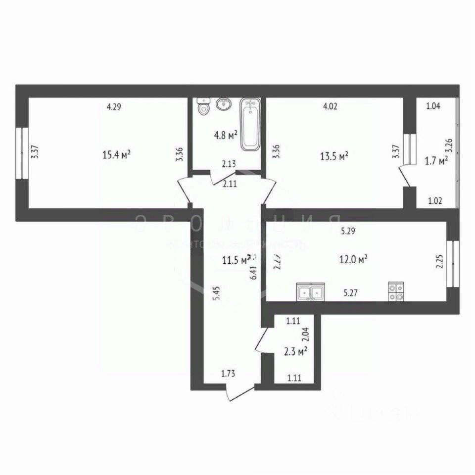 - 2 изолированные комнаты (15,4 кв. м + 13,5 кв. м);