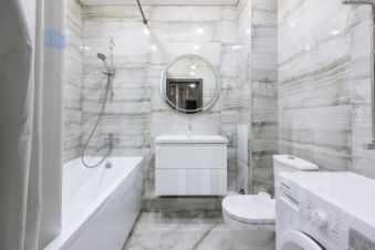 На полу немецкий ламинат, керамогранит, испанская плитка.