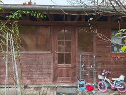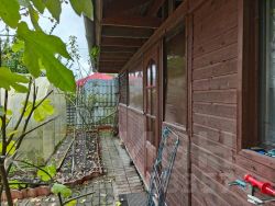 - Благоустроенная беседка. Хотя правильнее было бы назвать её летней кухней. В беседке проведено электричество, есть вода и канализация. Есть место для мангала с вытяжной трубой.