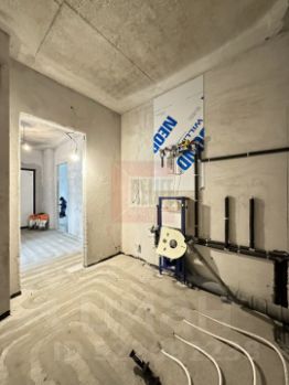 Уже выполнены: тёплые полы, встроенная сантехника, выровнены стены.