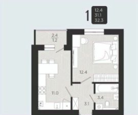 Продается однокомнатная квартира в доме комфорт-класса в ЖК "Октябрёнок". Удобная планировка квартиры - кухня 11 кв.метров с выходом на застекленную лоджию и комната правильной формы 12.5.