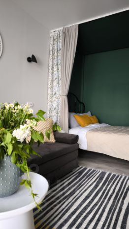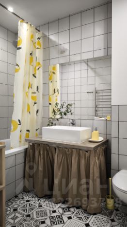 Просторная комната 25,2 м2 поделена на две зоны: спальню и гостиную. Совмещенный санузел с ванной!