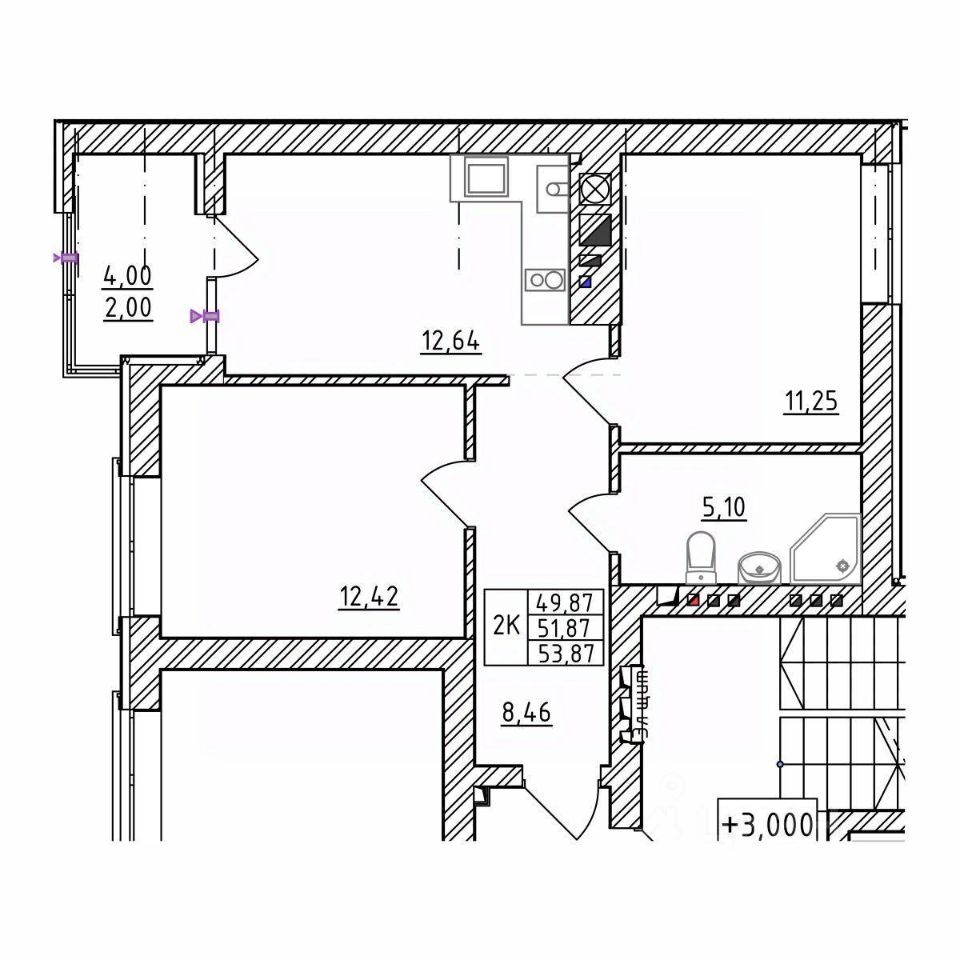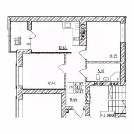 Продаётся 2-комнатная квартира в строящемся доме (Дом 3.3), срок сдачи: III-кв. 2026, общей площадью 53.87 кв.м., на 3 этаже. Новый жилой комплекс "Комфорт" от застройщика "СтройИнвестиция" расположен по адресу: г. Зеленоградск, посёлок Вишнёвое, Лесная улица.