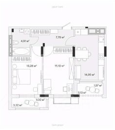Площадь квартиры 58,66 кв.м. Площадь лоджий 6.72 кв.м.