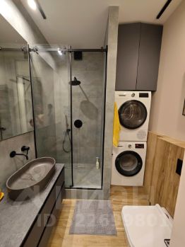 • В ванной комнате установлена сантехника от Paffoni (Италия), инсталляция и душевой трап Tece, унитаз и раковина Omnires, сушильная и стиральная машины Bosch (Польша).