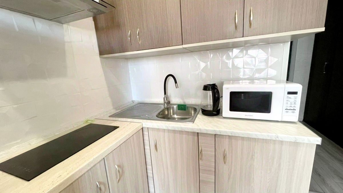 Эта квартира — настоящая находка для тех, кто ценит экономичность и удобство. Евроремонт выполнен с любовью и вниманием к каждой детали, так что вы сможете сразу же заехать и начать жить, не тратя время и деньги на дополнительные работы. В квартире остаётся вся необходимая мебель: индукционная плита, микроволновая печь, стиральная машинка, холодильник, телевизор, кровать и шкаф в коридоре. Это отличный бонус для будущих жильцов!