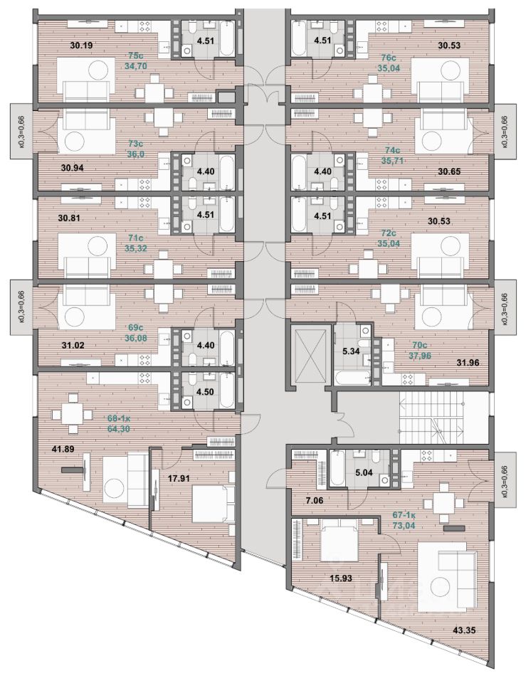 Продаётся 1-комнатная квартира в строящемся доме (Дом 1, секция 1), срок сдачи: I-кв. 2029, общей площадью 34.32 кв.м., на 4 этаже. Новый жилой комплекс "Морская лагуна" от Специализированного застройщика "БСК" расположен в г. Зеленоградск на ул. Гагарина.
