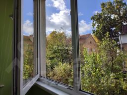 - окна квартиры с видом на зеленый сад
