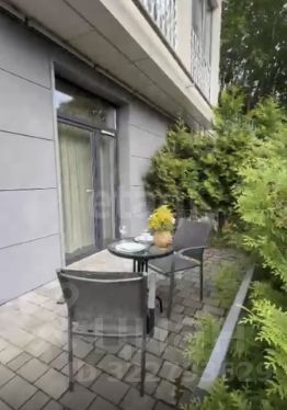 Особенностью апартаментов является просторная терраса 16 кв.м. в окружении туй, отделяющих дом от дороги и тротуара, и закрывающих от любопытных глаз. Она станет излюбленным местом для утреннего кофе или вечерних созерцаний.