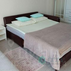 В комнате удобный двуспальный диван-кровать ( матрас на реечном каркасе без стыков топпер), вместительный шкаф для одежды и белья (двери зеркальные).