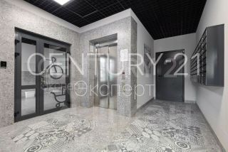 1 комн.кв.(евродвушка) с террасой 6 м² с выходом на новую школу, поликлинику и прогулочный парк Бульвар Снегова и ул. Суздальская. Квартира находится в тамбуре из 4 квартир на 4/10 этаже дома 2023 г.п. общей площадью 53 м² мастер спальня 14,9 м², кухней-гостиной 19,5 и 2 санузлами (2,6 и 3,9 м²), высота потолков 3,0 м (квартира в сером ключе)