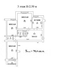 ТРЁХкомнатная квартира общей площадью 78,4 кв.метра.