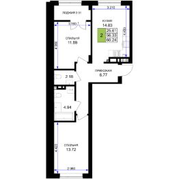Продаётся 2-комнатная квартира в строящемся доме (Дом 5 (2 очередь)), срок сдачи: I-кв. 2027, общей площадью 60.24 кв.м., на 5 этаже. Новый жилой комплекс "Включи" от застройщика "СпецСтройКубань" расположен в г. Гурьевск в районе Гурьевского шоссе.