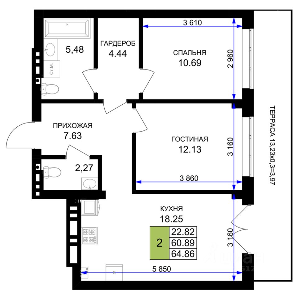 Продаётся 2-комнатная квартира в строящемся доме (Дом 3 (1 очередь)), срок сдачи: I-кв. 2026, общей площадью 64.86 кв.м., на 1 этаже. Новый жилой комплекс "Включи" от застройщика "СпецСтройКубань" расположен в г. Гурьевск в районе Гурьевского шоссе.