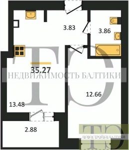 Квартира: 1 к 35,27 кв.м., 8 этаж в комплексе Подсолнухи, 4 очередь, корп.6, сдача: 4кв. , этажей: 9, адрес Калининград г., Крейсерская ул., , Застройщик: Модуль-Стройград.