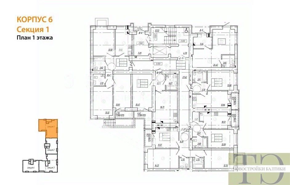 Квартира: 2 к 53,04 кв.м., 1 этаж в комплексе Подсолнухи, 4 очередь, корп.6, сдача: 4кв. , этажей: 9, адрес Калининград г., Крейсерская ул., , Застройщик: Модуль-Стройград.