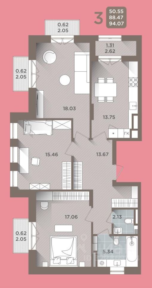 Стоимость 18 млн указана ТОЛЬКО за квартиру. Кладовая и паркинг цена по согласованию.