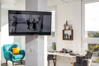 Апартаменты расположены на 5 этаже, из окон открывается вид на небо и смешанный лес.