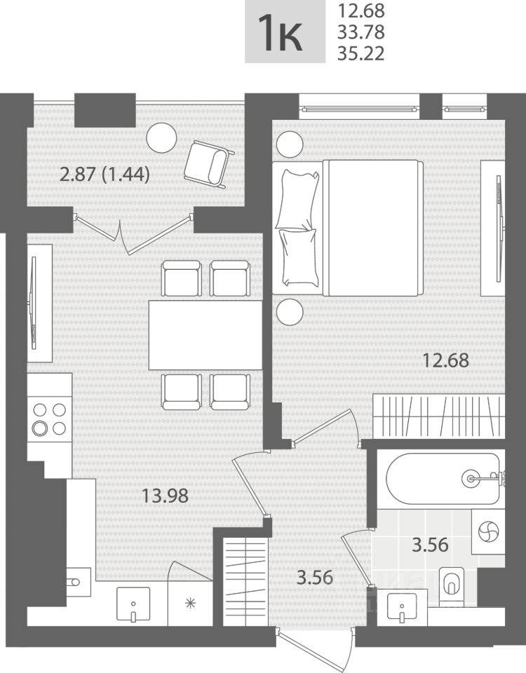 Продаётся 1-комнатная квартира в строящемся доме (Дом 1.3), срок сдачи: III-кв. 2027, общей площадью 35.22 кв.м., на 3 этаже. Новый жилой комплекс "МОре" от Строительной компании "Меркурий" расположен по адресу: Калининградская область, г. Пионерский, пос. Рыбное.