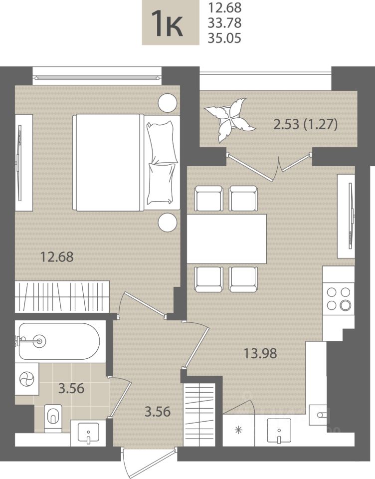 Продаётся 1-комнатная квартира в строящемся доме (Дом 1.3), срок сдачи: III-кв. 2027, общей площадью 35.05 кв.м., на 4 этаже. Новый жилой комплекс "МОре" от Строительной компании "Меркурий" расположен по адресу: Калининградская область, г. Пионерский, пос. Рыбное.