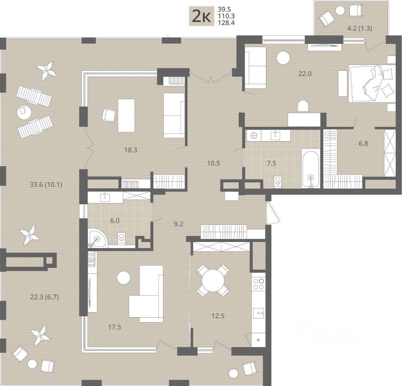Продаётся 2-комнатная квартира в строящемся доме (Дом 1.2), срок сдачи: IV-кв. 2026, общей площадью 128.4 кв.м., на 7 этаже. Новый жилой комплекс "МОре" от Строительной компании "Меркурий" расположен по адресу: Калининградская область, г. Пионерский, пос. Рыбное.