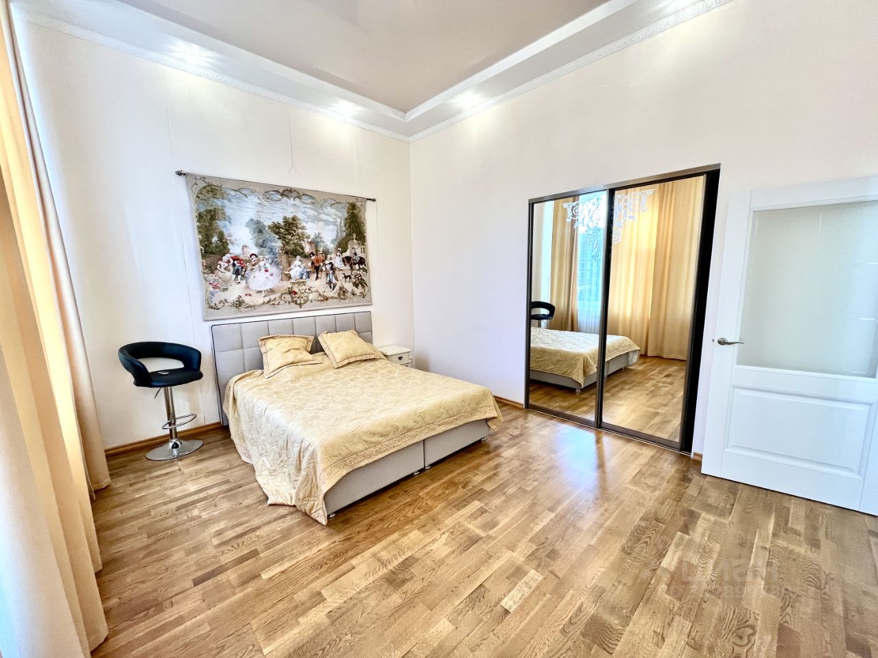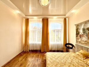 Супер удобная и продуманная планировка: уютная кухня 9м², просторная гостиная-столовая 13м² и две изолированные спальни 9м²+22м². Супер высокие потолки 4,2 метра ! Есть большая гардеробная. Окна выходят на две стороны (см фото).