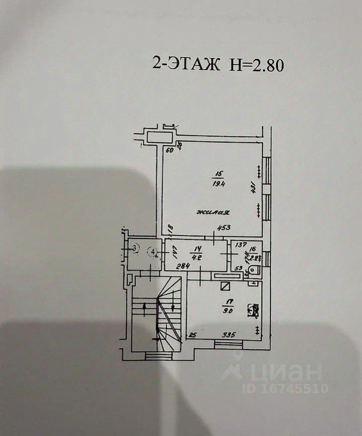 Квартира общей площадью 35 м2, кухня 9 м2 и большая комната 19.4 м2. Высота потолков 2.8 м!