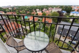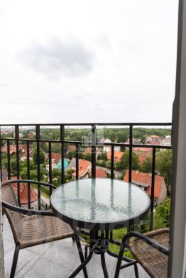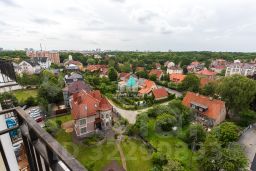 Квартира находится на 9 этаже многоквартирного дома с нежилым чердаком (мансардным этажом), что обеспечивает тишину и отсутствие соседей сверху. Из окон открывается потрясающий панорамный вид на старинный прусский район и живописный парк "Ашман". Район тихий и зеленый, с развитой инфраструктурой. Рядом находятся магазины, кафе, аптеки и другие необходимые объекты.